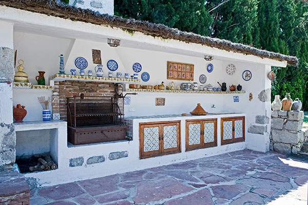 Detrás de la casa encontramos esta bonita y original barbacoa frente a un agradable cenador. |