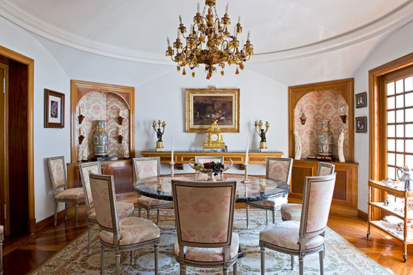 Desde el salón accedemos al comedor, muy luminoso gracias al ventanal que da al patio de luz. Merece mención la gran calidad de los suelos y puertas, de madera de Mansonia. |