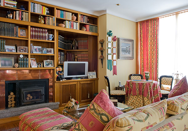 Desde el salón accedemos mediante una gran puerta corredera que se oculta casi enteramente en la pared, a una agradable sala de estar con chimenea. |