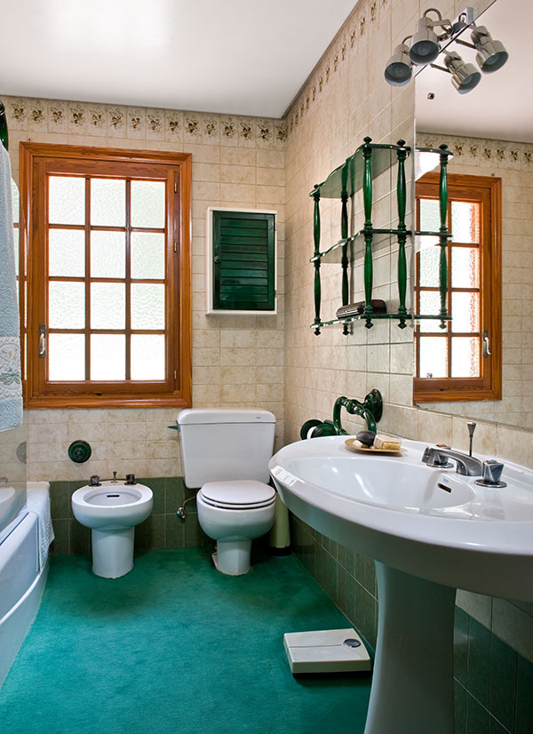 Detalle del baño del dormitorio principal. Como se aprecia en la fotografía, la carpintería exterior es de madera, algo poco frecuente y un signo de calidad. |