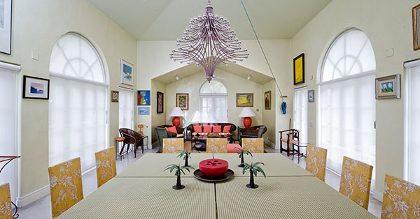 Vista desde el extremo opuesto en la que apreciamos la agradable sala de estar al fondo. Por último mencionar que en la planta sótano se encuentra una amplia biblioteca y zona de despacho de trabajo. Además, la casa cuenta con un garaje con capaciadad para tres coches. |