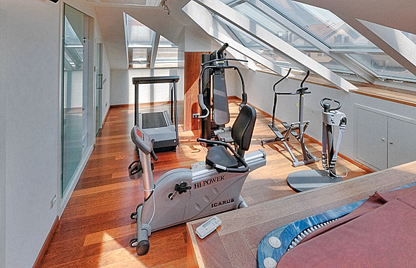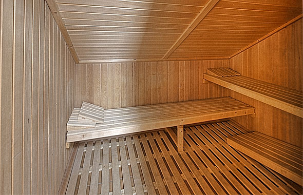 Una amplia sauna con capacidad para tres personas complementa el gimnasio, al igual que un cuarto de baño completo dotado de cabina de ducha de hidromasaje. |