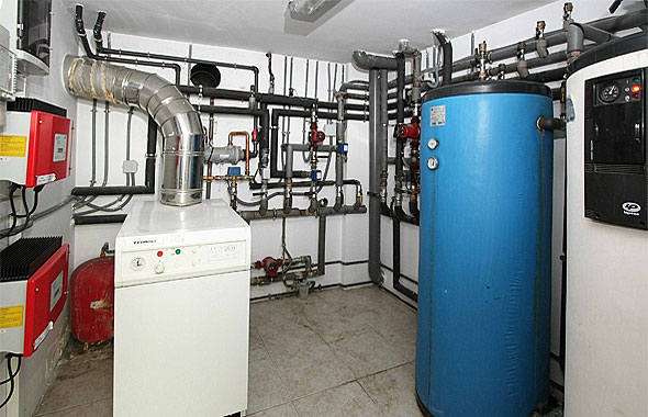 Esta vista del cuarto de instalaciones nos da una clara idea del nivel tecnológico de los sistemas de calefacción y agua caliente sanitaria. |