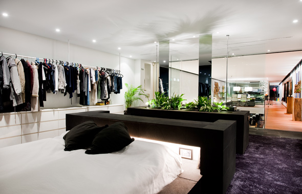 Detalle del dormitorio de la suite principal. Se aprecia el baño acristalado ubicado a la entrada de la misma. Por último mencionar que las instalaciones son todas de última generación y totalmente controlables desde cualquier punto del mundo por los propietarios, audio en toda la vivienda y en el jardín, servidores de audio/video, calefacción mediante convectores de baja temperatura, aire acondicionado inverter, paneles solares, alarmas y sistemas de seguridad, todo ello integrado en un interfaz intuitivo y de fácil manejo. |