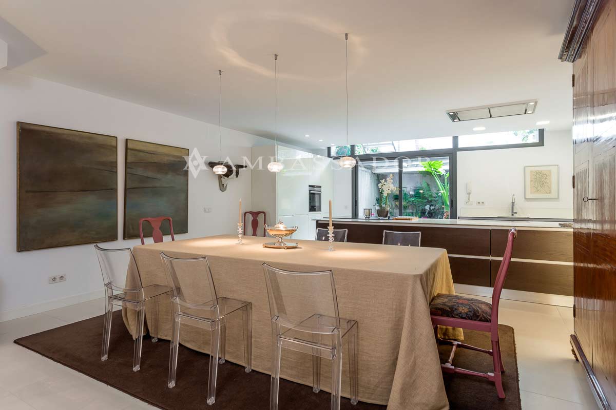 En la planta semi-sótano es donde se encuentra el comedor y una amplia cocina abierta con salida directa al patio inglés. El cual hace que sea una estancia muy luminosa y con mucha personalidad. |