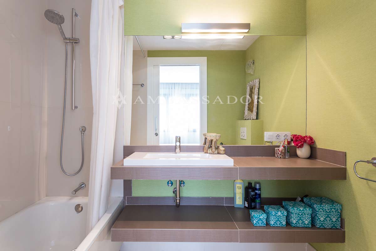 El cuarto de baño es sencillo. Tiene una encimera revestida de material cerámico con lavabo encastrado además de bañera e inodoro. Las paredes están pintadas salvo la zona de la bañera que está revestida con material cerámico de excelente calidad. |