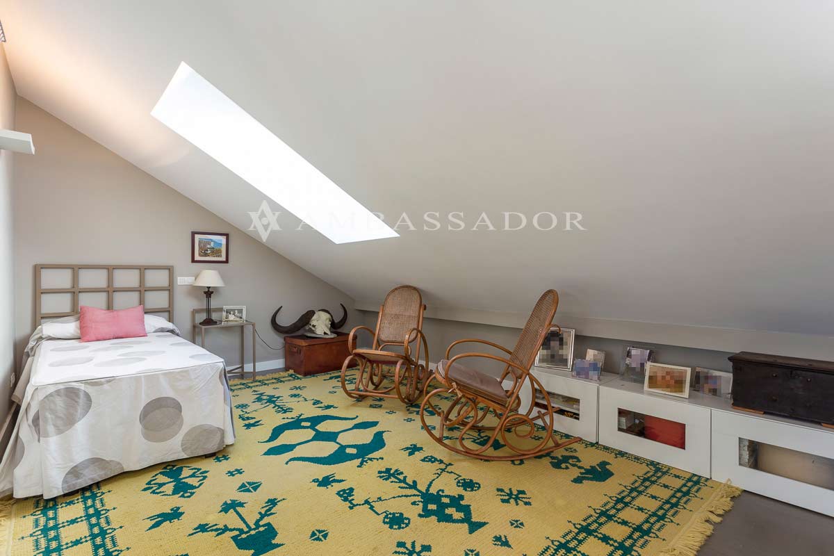 Actualmente el salón-estar está destinado como dormitorio. Destacar la entrada de luz natural gracias a las ventanas tipo velux instaladas en la cubierta. |