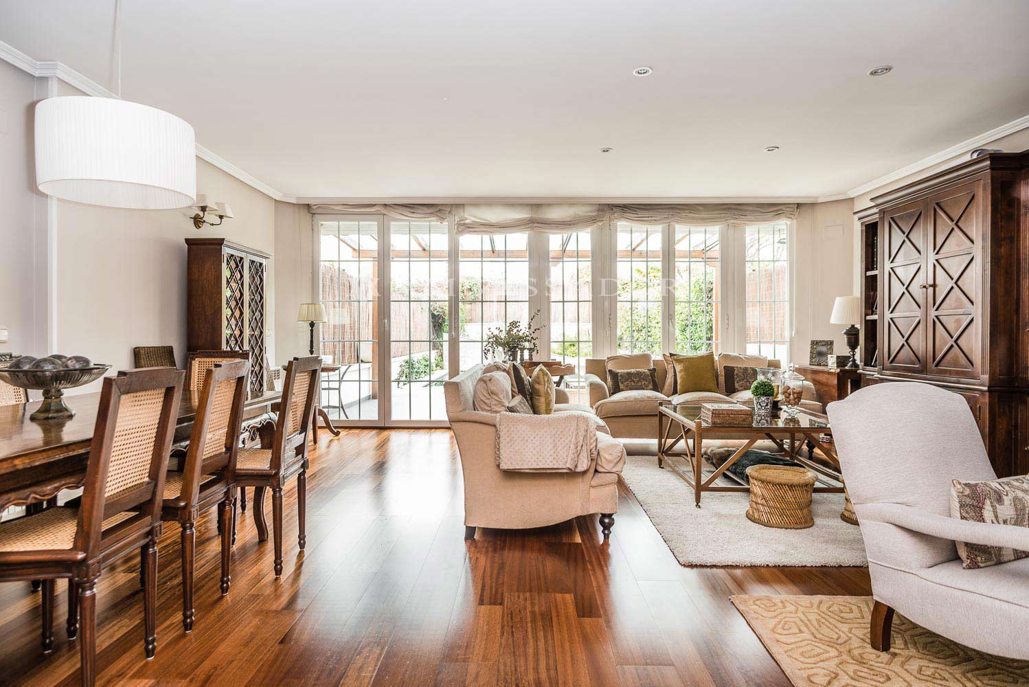 lámparas de techo como la que luce el comedor. Para situar bien al
