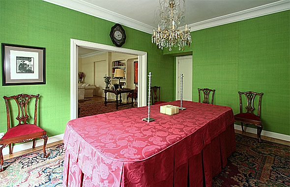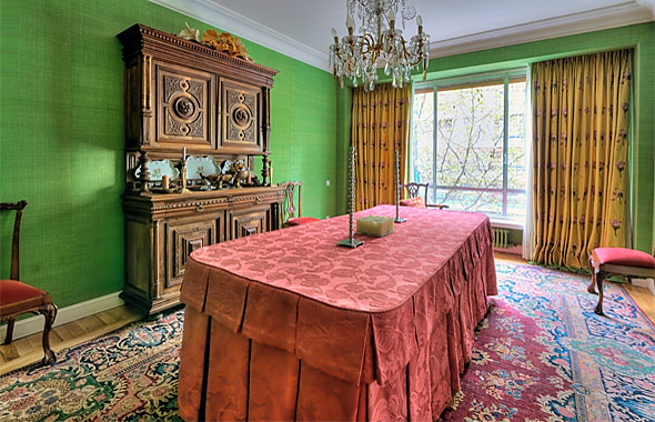 Esta otra vista del comedor nos deja ver su conexión con el resto de la zona de recibo. También tomamos aquí nota de la puerta lateral que comunica directamente con el distribuidor general de la vivienda a fin de proporcionar un más rápido acceso a oficio y cocina. |