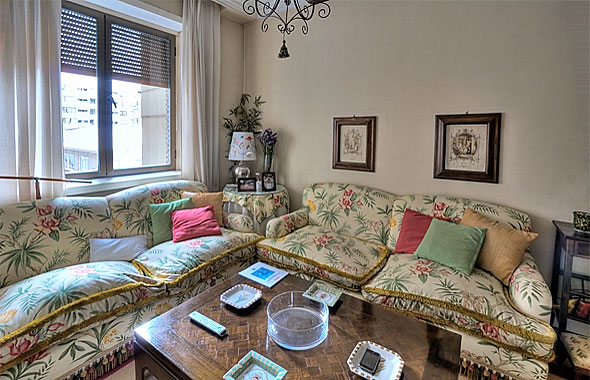 El cuarto de estar familiar es particularmente luminoso, pues sus ventanas se orientan a un patio de manzana de grandes dimensiones. |
