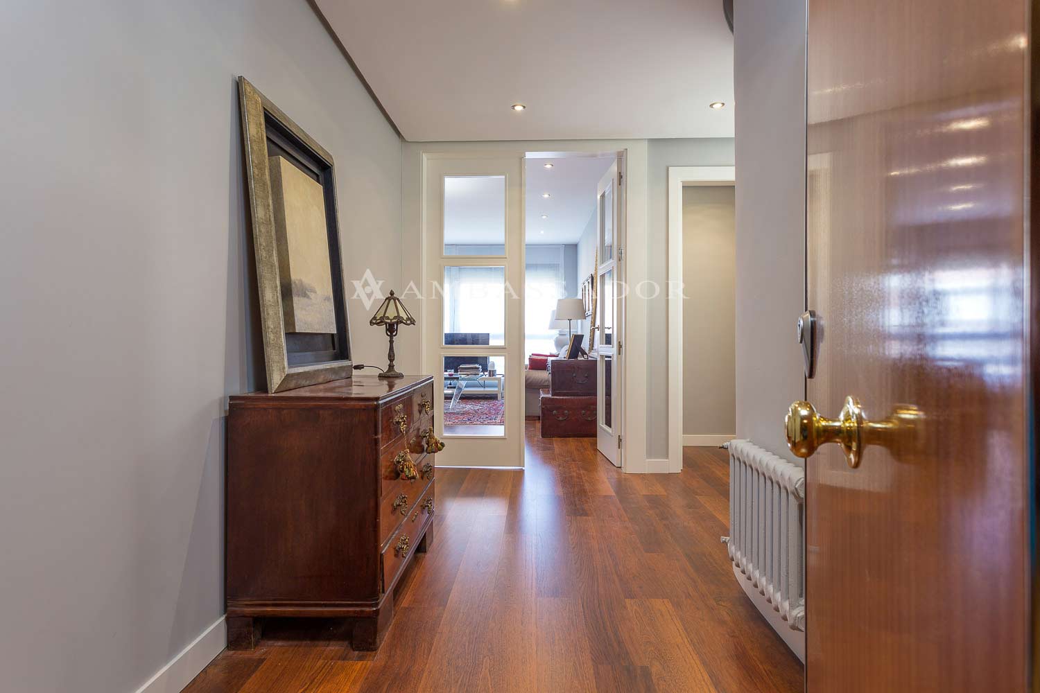 Sobre esta líneas tenemos el hall de entrada de este piso de 195m2 construidos. Desde el hall de entrada accedemos al salón-comedor, la cocina y al pasillo encargado de distribuir la zona de los dormitorios |