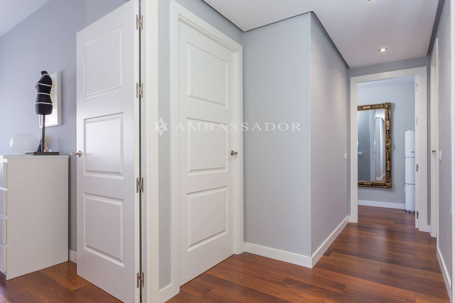 Sobre estas líneas podemos ver una imagen del pasillo encargado de distribuir los dormitorios. Este piso posee un total de 3 dormitorios. El principal con vestidor y cuarto de baño en suite y otros dos dormitorios que comparten otro cuarto de baño completo. |