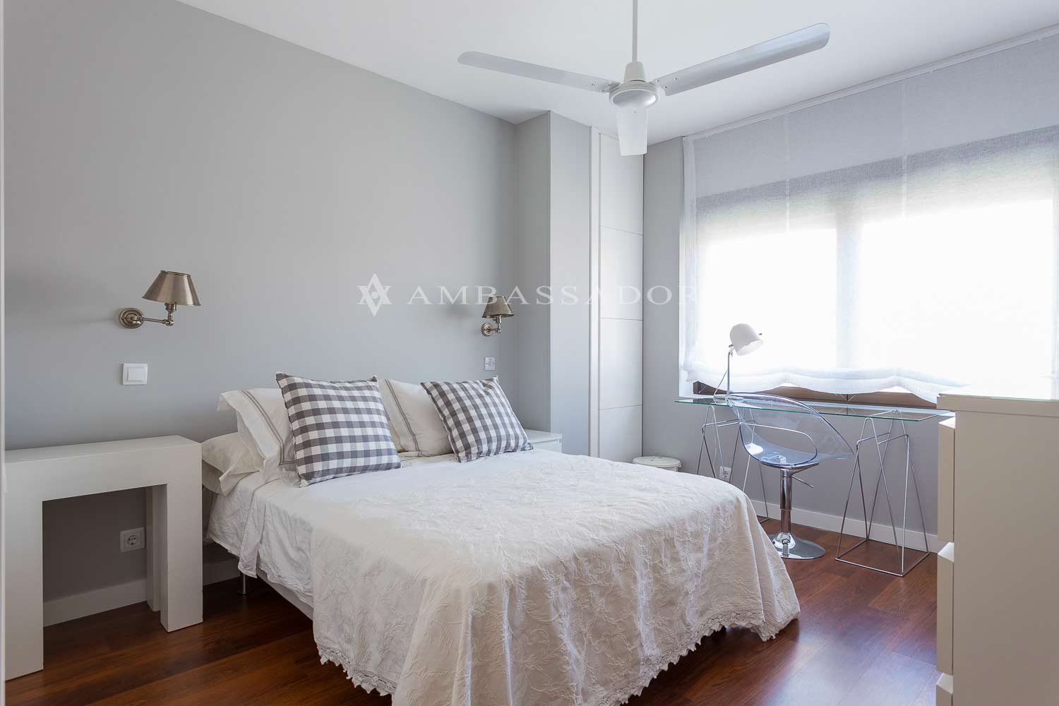 Los dormitorios secundarios son amplios y muy luminosos. Los tonos en gris perla junto con la carpintería de madera en color blanco hacen que las estancias sean cálidas y con diseño. |