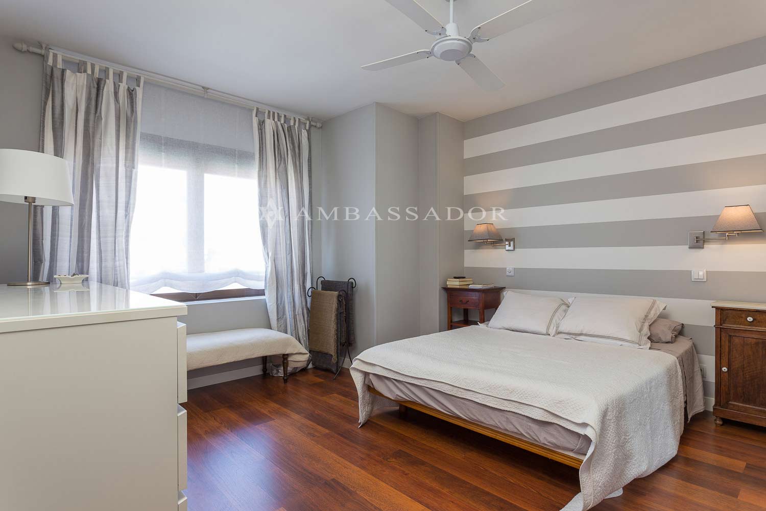 El dormitorio principal está diseñado en tipo suite, tiene además de una amplia zona de descanso, un amplio vestidor con armarios empotrados a ambos lados y un gran cuarto de baño. |
